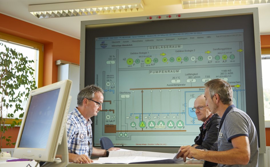 Le système de télésurveillance et de télécommande du SIDEN permet une gestion optimisée (24 heures sur 24) des infrastructures épuratoires du syndicat. Les installations des stations d'épuration, de pompage et des bassins d'orage sont gérées par des automates programmables. Ceux de la station de Bleesbruck sont reliés au poste de supervision central par des fibres optiques. On accède aux stations décentralisées grâce à des modems via les lignes téléphoniques traditionnelles, le DSL et le réseau GSM.