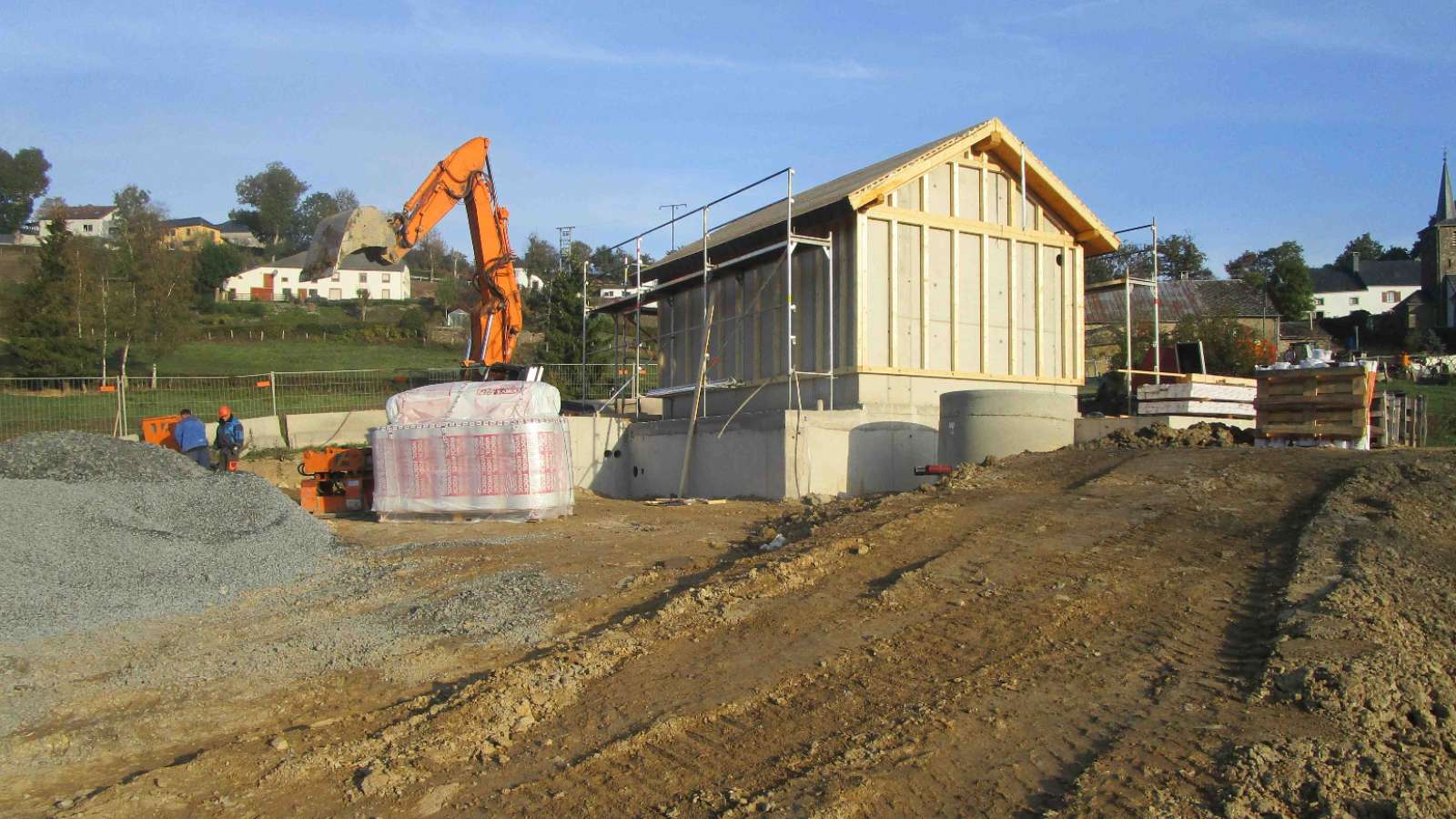 Installation de la façade en bois et du toit
