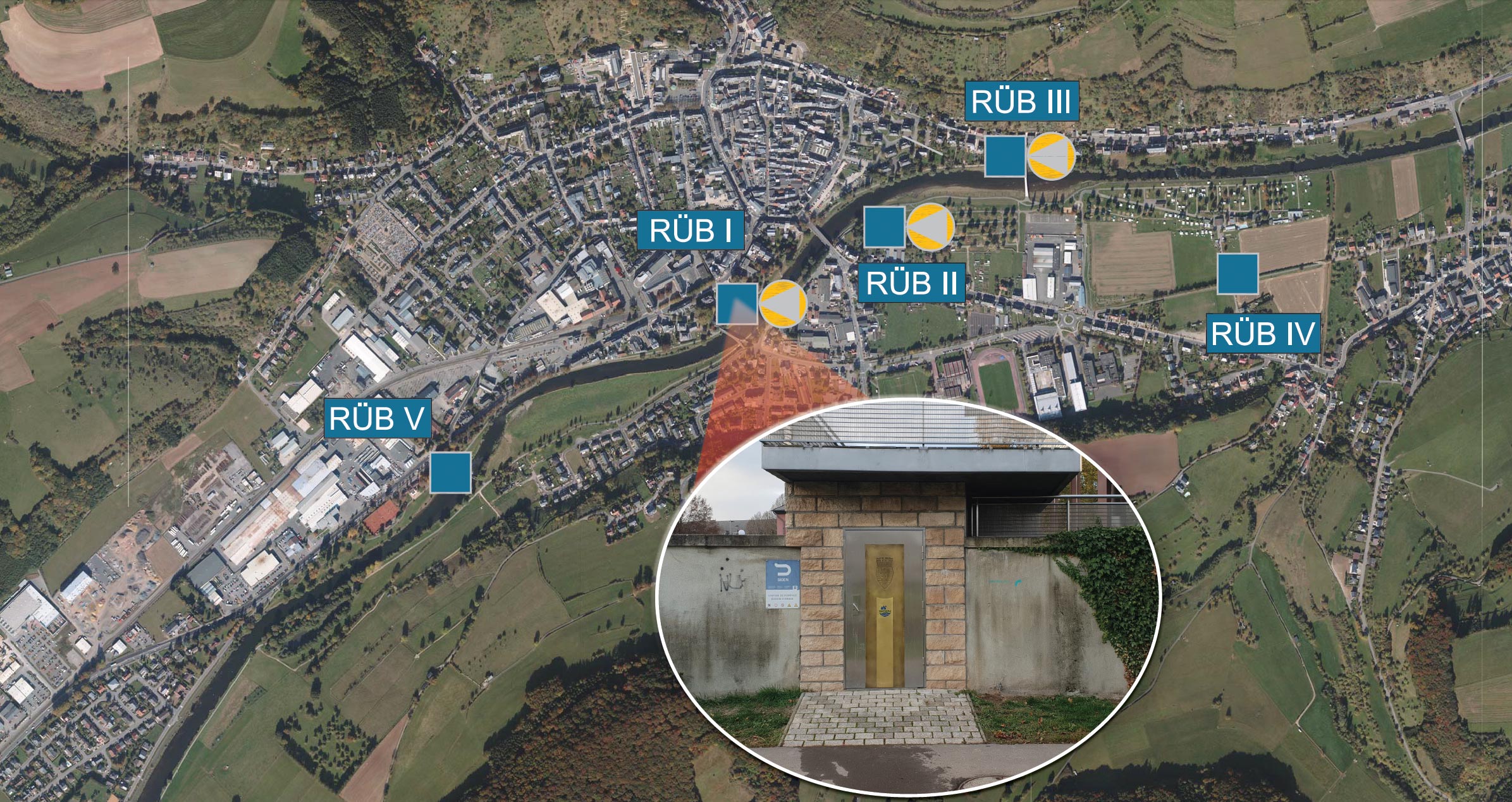 Anfang der 2000er Jahre sah die generelle Entwässerungsplanung für diese Stadt vor, die rund 7 bestehenden Regenüberläufe schrittweise durch 5 Regenüberlaufbecken zu ersetzen, um die Nutzung der Sauer als touristische Hauptattraktion besser zu schützen.