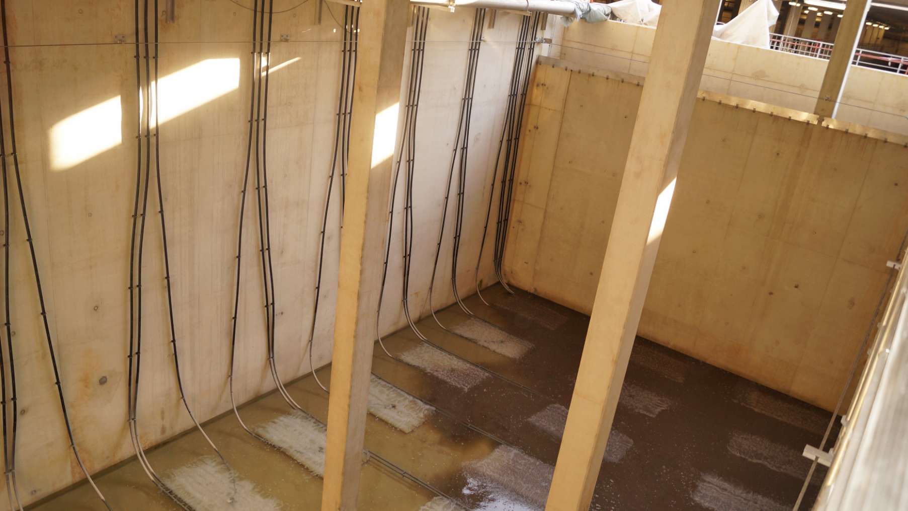 Au niveau de la filière du traitement des boues, le concept retenu prévoyait de maintenir, après mise en conformité, les deux digesteurs existants et de procéder à la construction d'une unité supplémentaire. Les silos actuels d'épaississement, de tamponnage des boues et de traitement des eaux troubles ont été remplacés par de nouvelles entités, y compris les épaississeuses mécaniques et déshydrateuses par centrifugation avec leurs installations périphériques. En ce qui concerne la valorisation énergétique des gaz issus du traitement des boues, le projet prévoyait la construction d'un nouveau réservoir avec centrale de cogénération. Les installations d'alimentation en énergie électrique ainsi que le volet de la commande/régulation ont été adaptés aux nouvelles installations épuratoires.